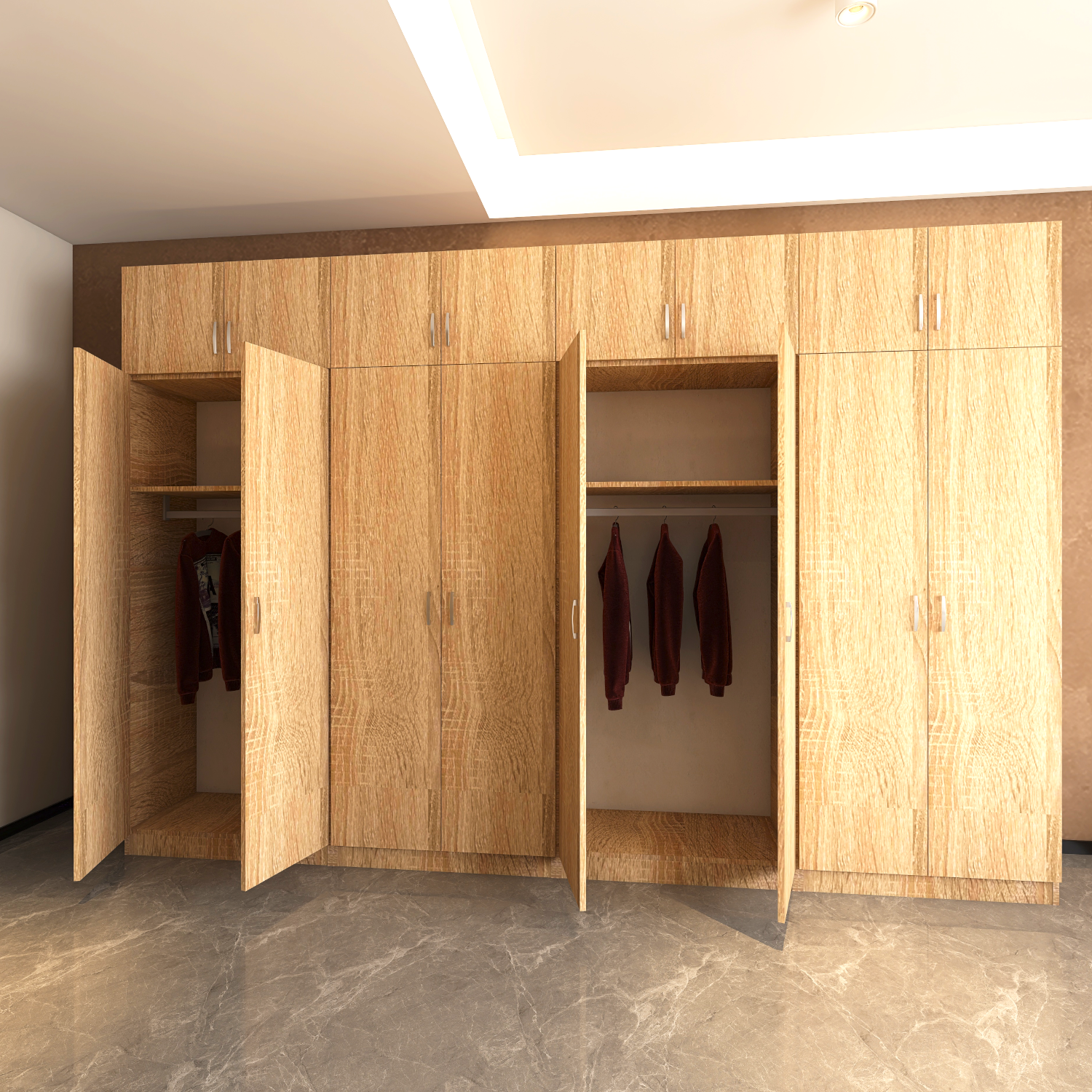 DituProd Dulap Haine cu 8 usi cu rafturi si bara haine si Suprapozabil, L320 x H240 x A50cm, Material Pal18mm, Culoare STEJAR SONOMA