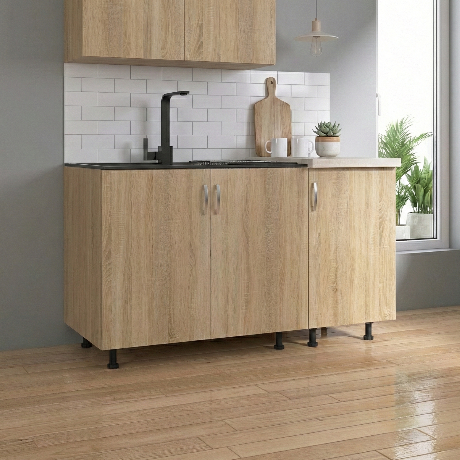 DituProd Corp Inferior Bucatarie cu 3 usi 120x50x90 cm, Culoare STEJAR SONOMA , Pal 18mm, Blat Termorezistent 2.8 cm