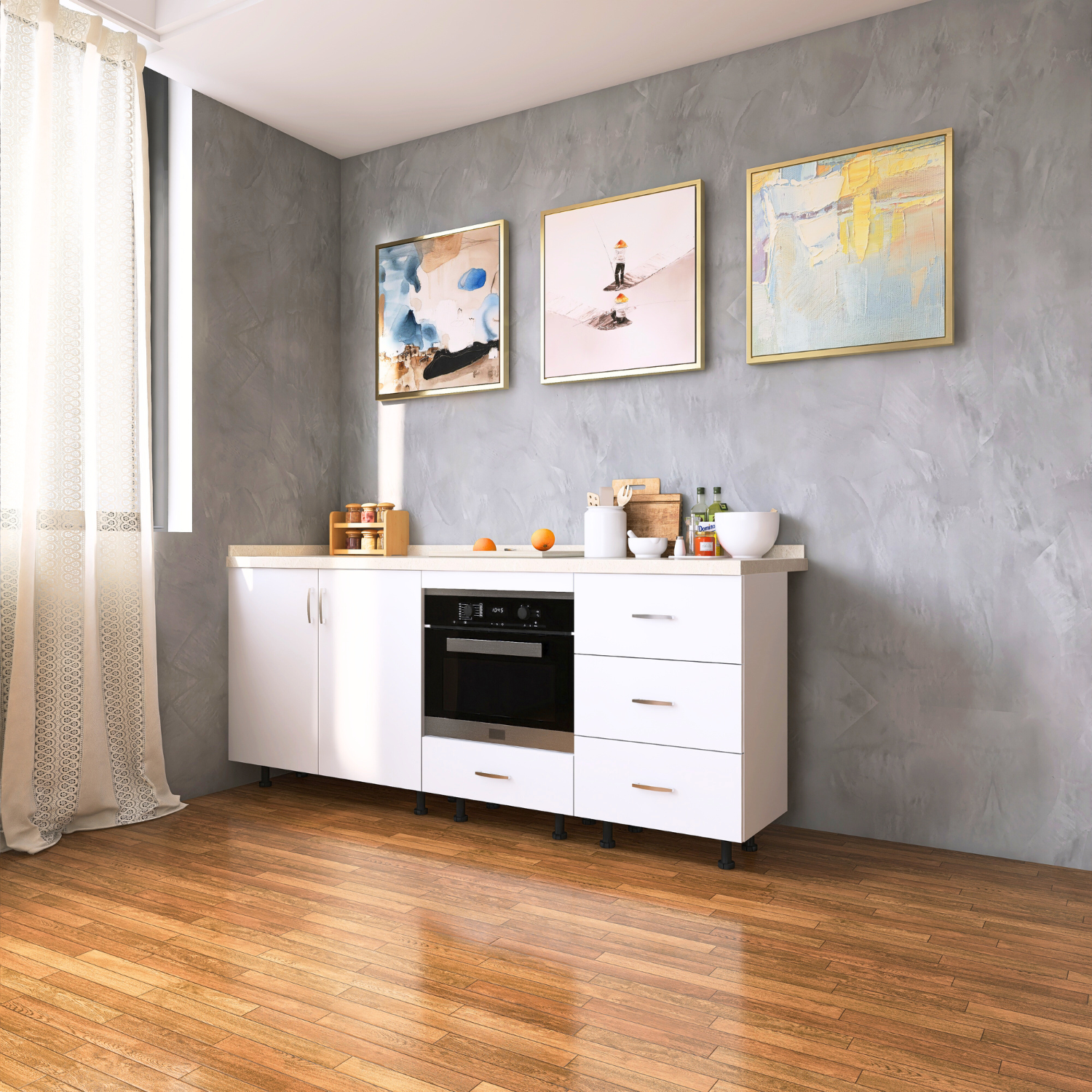 Dacă sunteți în căutarea unui corp de bucătărie încăpător, bine construit și cu un aspect modern, acest corp inferior este o alegere sigură.