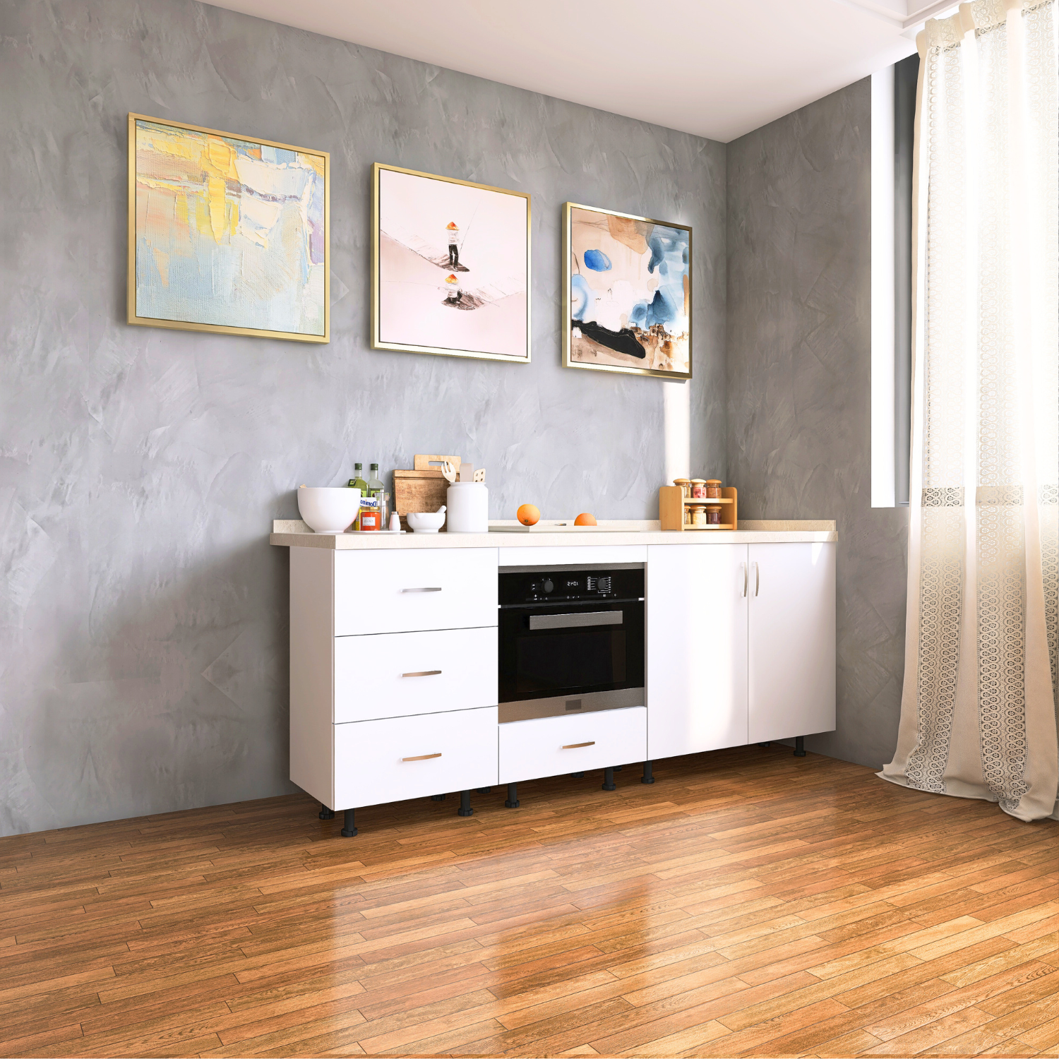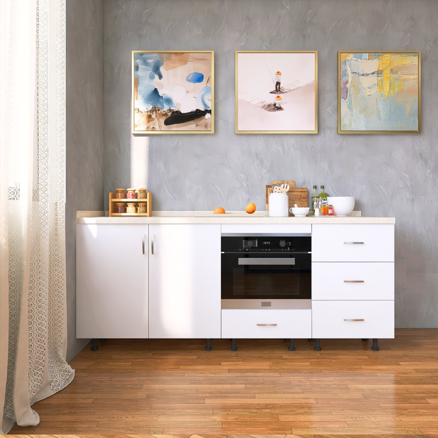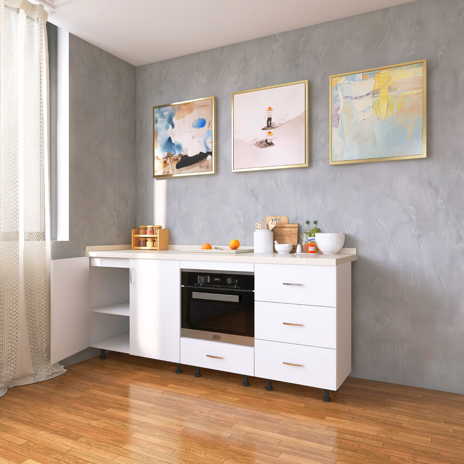 ✔ Design Alb – nuanță caldă și naturală, ușor de integrat în orice bucătărie.