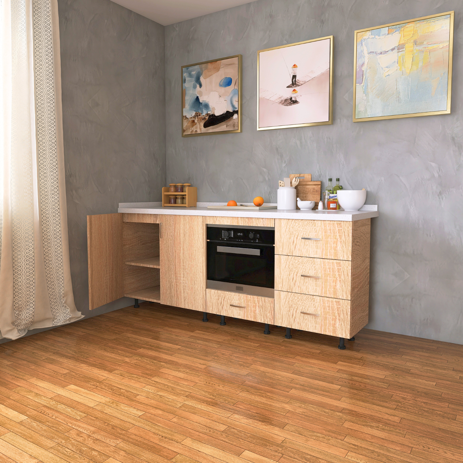 Dacă sunteți în căutarea unui corp de bucătărie încăpător, bine construit și cu un aspect modern, acest corp inferior este o alegere sigură.