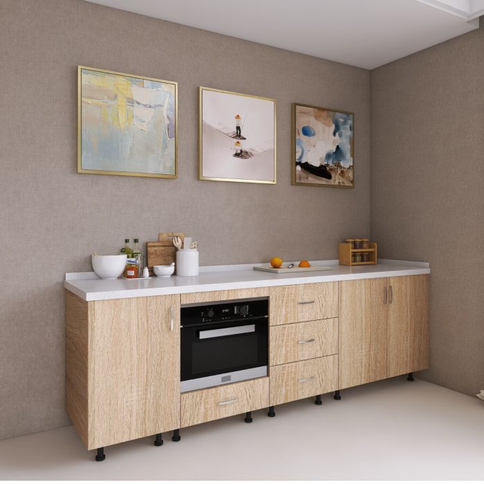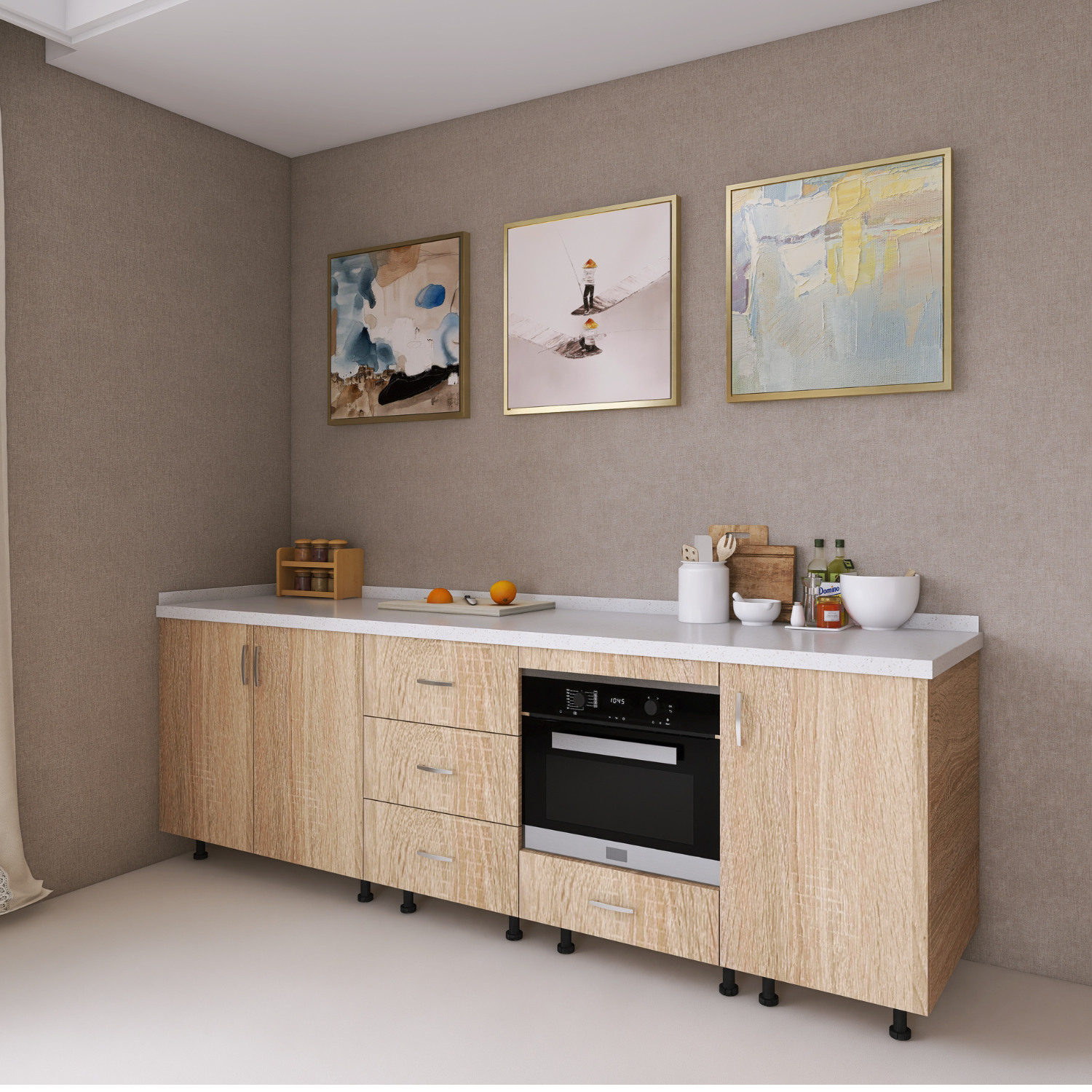 ✔ Design Stejar Sonoma – nuanță caldă și naturală, ușor de integrat în orice bucătărie.