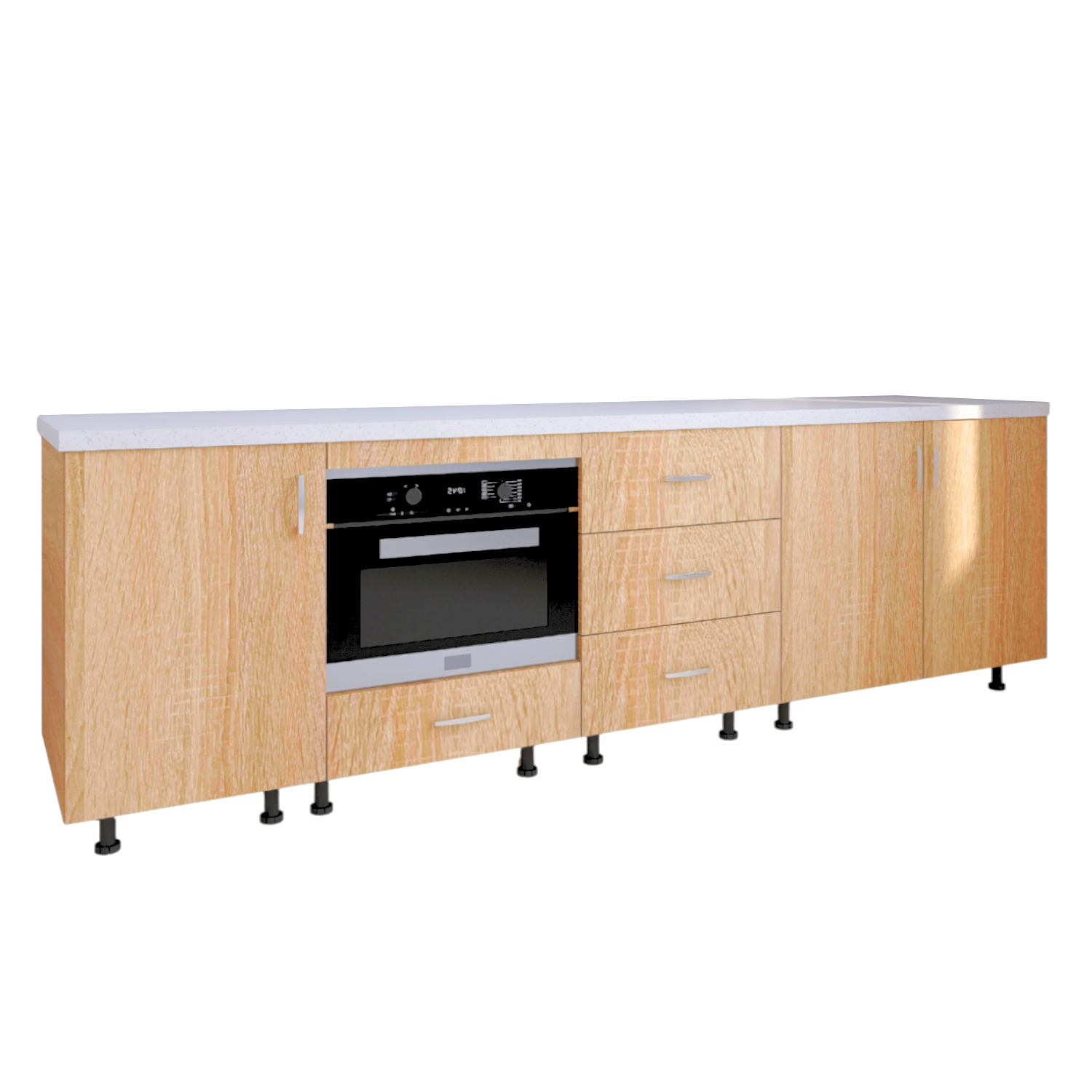 Corp Inferior Bucatarie L200 x H90 x A50 cm, Stejar Sonoma, Pal 18mm, Blat Termorezistent 2,8 cm Grosime
