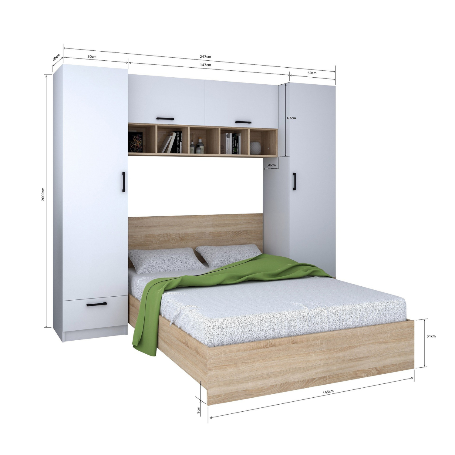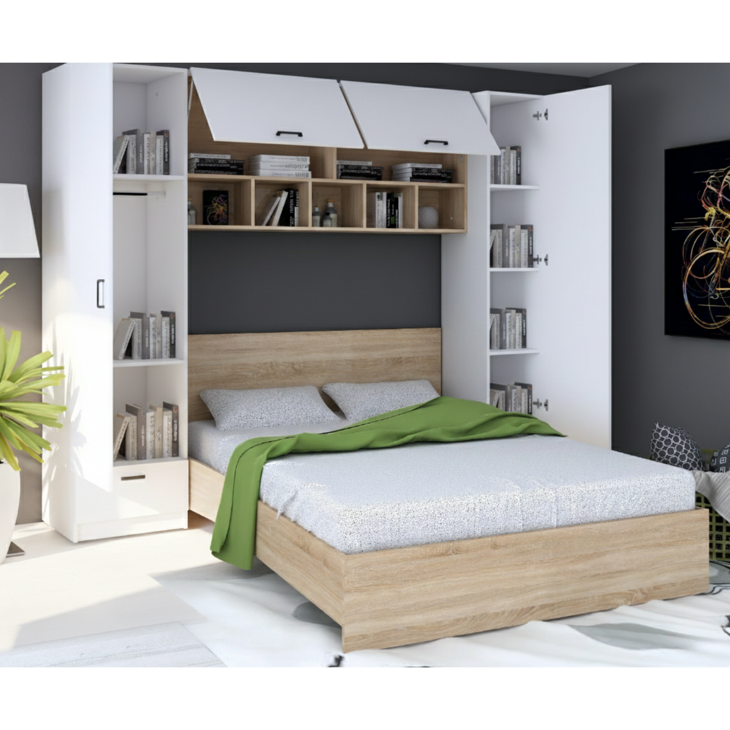 Adaugă un plus de funcționalitate și eleganță dormitorului tău cu acest set complet de mobilier, realizat din PAL melaminat de calitate, în combinația modernă Alb + Sonoma. Designul contemporan și compartimentarea practică îl fac ideal pentru un spațiu bine organizat și aerisit.