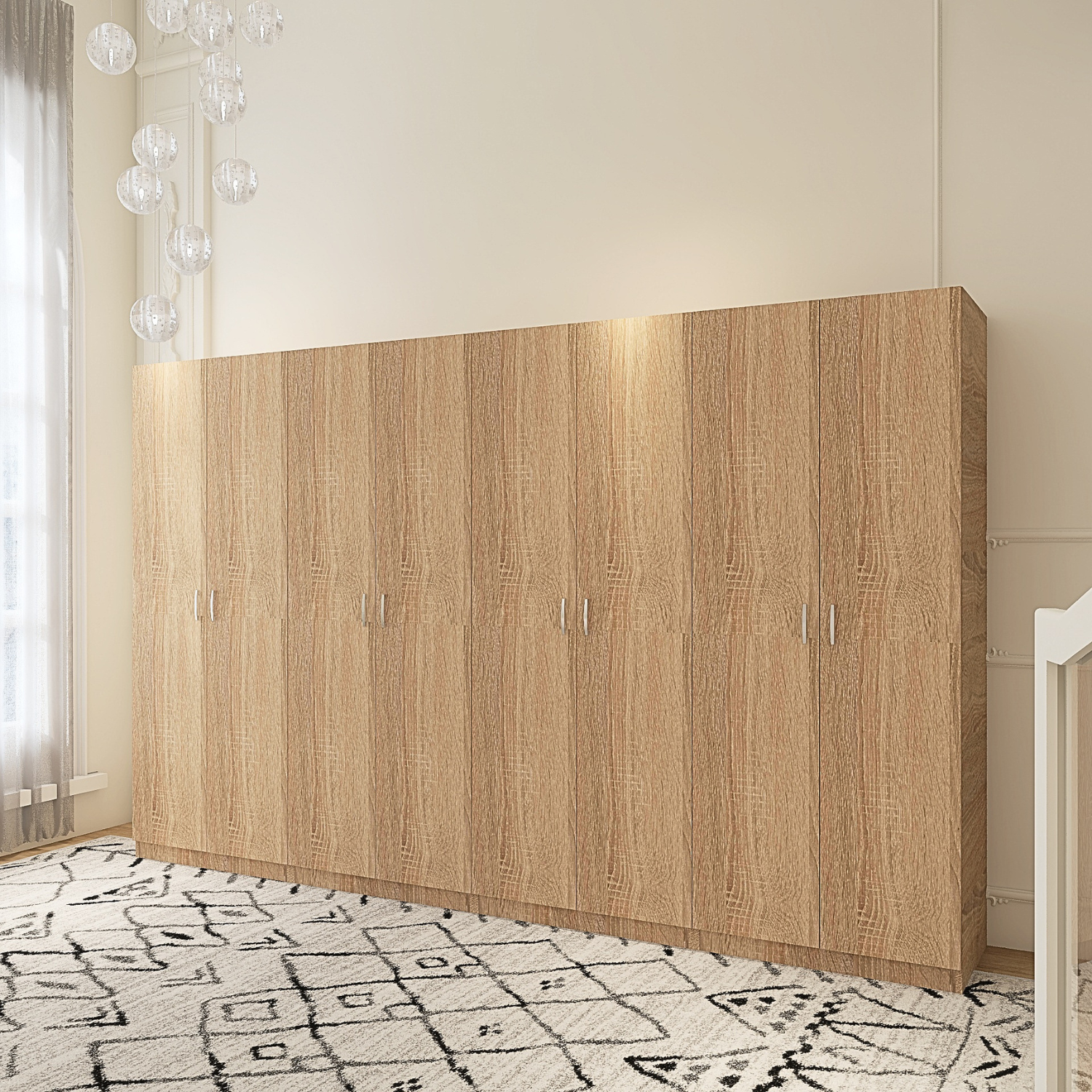 Dulap Haine cu 8 usi cu rafturi si bara haine, L320 x H200 x A50cm, Material Pal18mm, Culoare Sonoma